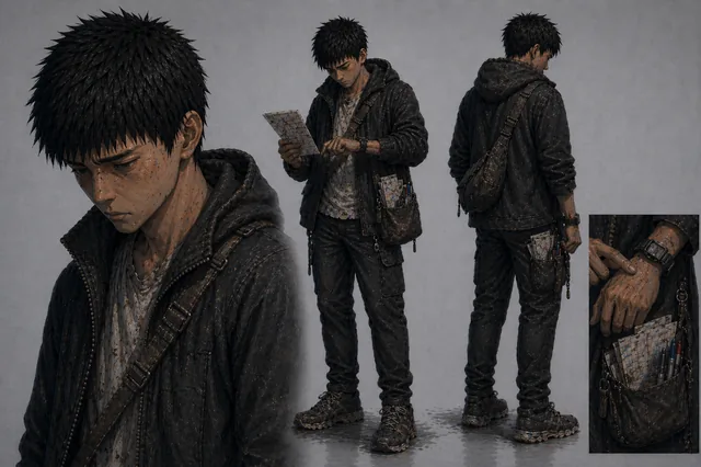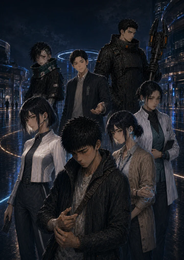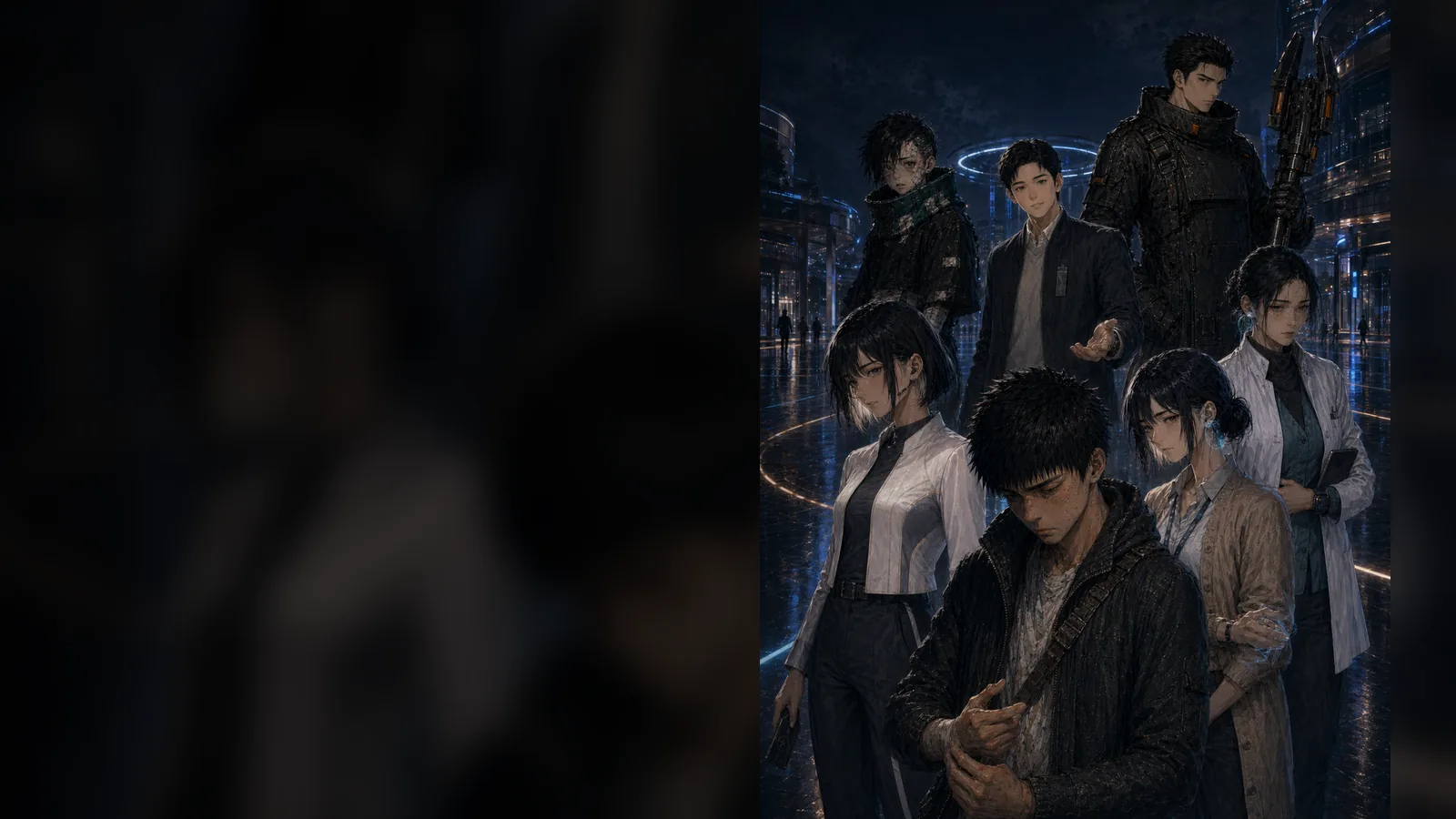 The current public art package gives the site a real visual anchor: ensemble key art, cast references, and a mood that connects the comic lane to VRAI's broader AI-driven game universe.